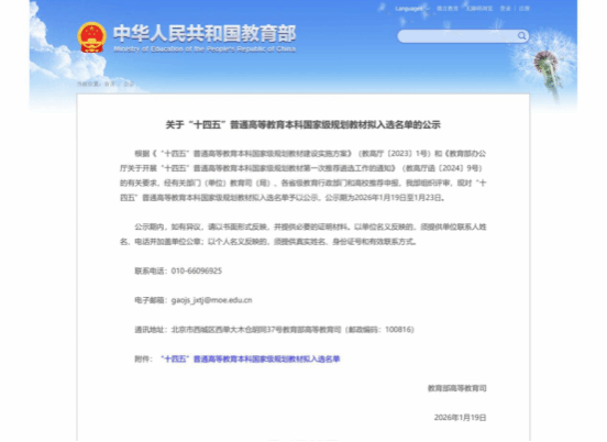 - 中国地质大学出版社两部教材入选“十四五”普通高等教育本科国家级规划教材2026/01/28