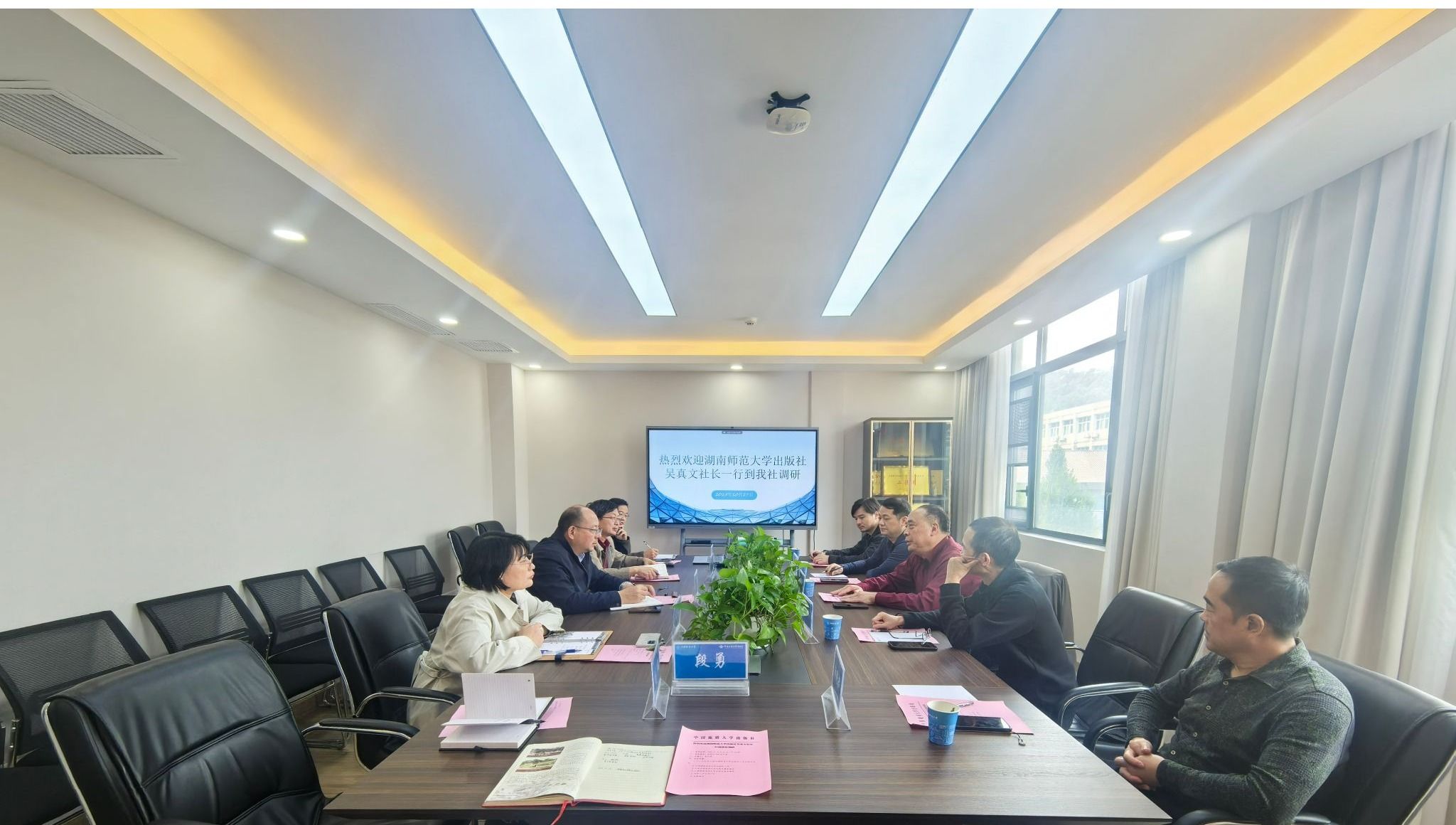 (通讯员 易帆)10月27日,湖南师范大学出版社吴真文社长一行来我社调研交流。社长、社党总支书记江广长和相关部门负责人出席座谈交流,副社长余江涛主持交流会。