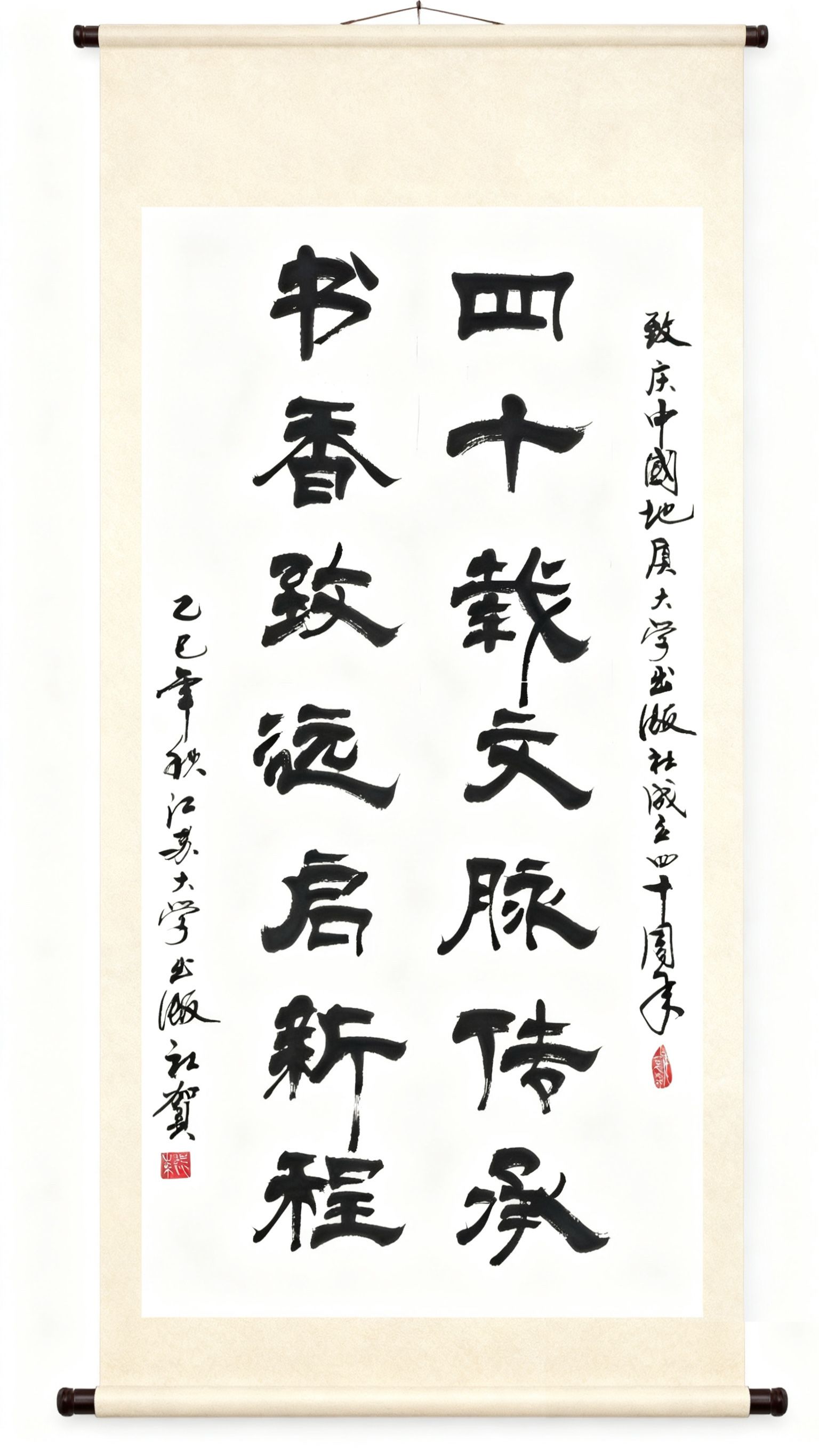 江苏大学出版社题字:四十载文脉传承,书香致远启新程。寄语中国地质大学出版社在过去的四十年里,传承科学文化、学术薪火的,将走向更灿烂的新里程。
