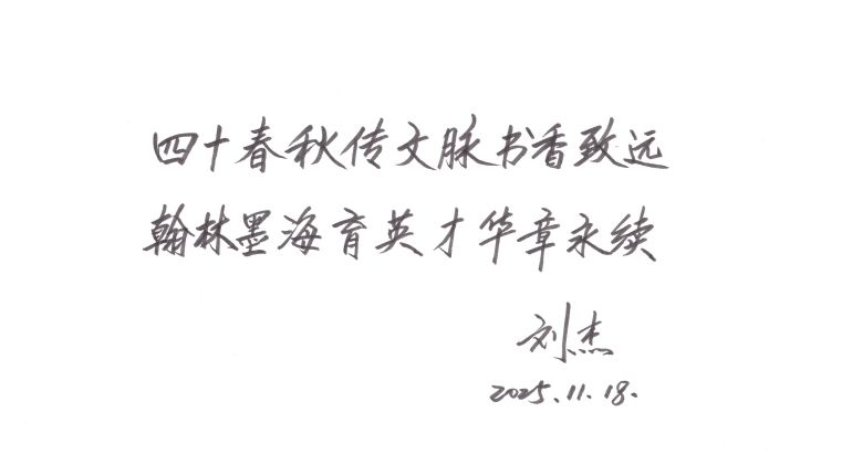 最后,刘杰书记送上题词勉励,祝贺出版社成立四十周年,希望出版社事业更上一层楼,取得更大发展。