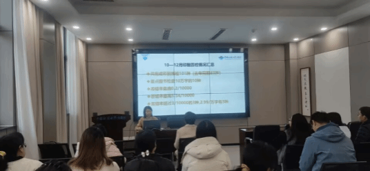 随后,质控中心主任陈琪就出版社2025年第四季度图书质量检查情况进行分享,将2025年第四季度数据与往年同期进行了对比,分析了质量管理情况。通过具体案例,与全社编辑分享了稿件中的易错点,提升编辑编校能力。